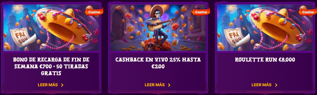 - Recarga de fin de semana: hasta €700 + 50 tiradas gratis.