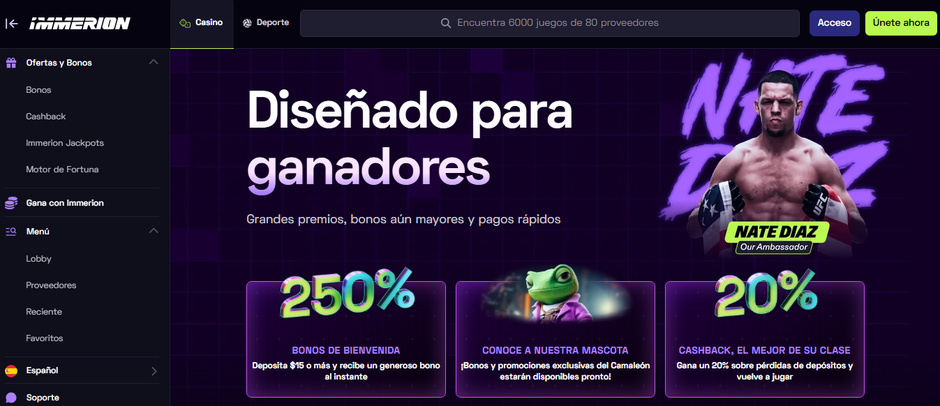 Depende de lo que busques. Como producto, Immerion es potente: más de 8.000 juegos, paquete de bienvenida por tramos y pagos en cripto y tarjetas (Visa/Mastercard, Apple/Google Pay) con buena experiencia móvil.