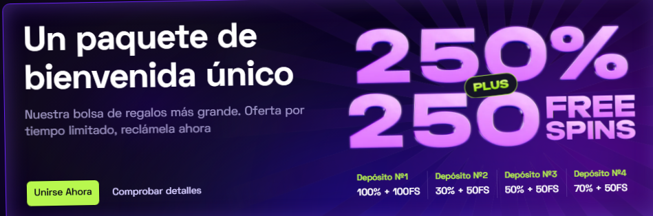 Paquete de bienvenida — 250% + 250 giros